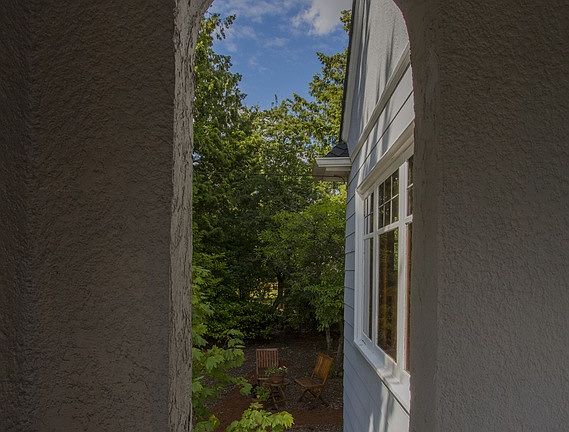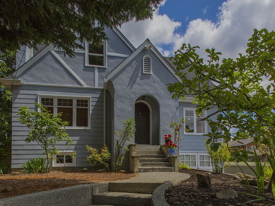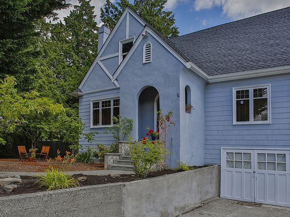 Sitting just above the street, this timeless Tudor has been repainted, refinished, and staged, and is ready for you. Lovingly lived in with 3 Bedrooms on the upper level, 2.5 Baths, one on each floor, and MIL potential in the daylight lower level. Sharing an arched doorway, the formal spaces have built-ins, coved ceilings, unpainted mahogany woodwork, leaded windows, and a cozy wood burning fireplace. Many other architectural details are throughout this beautiful home. The light-filled eat-in Kitchen, Master Bedroom and Full Bath, are all on the Main floor. The hardwood floors on the main level and the fir floors on the upper level have been refinished and the whole interior has a fresh coat of paint. There's a new Kitchen floor and new carpet on the stairs. On the lower level you'll find a Family Room, 1 Bedroom, a Full Bath, an extra finished room for storage or hobbies and a large Laundry Room. The fully fenced back yard has raised garden beds, lots of sunlight and shaded spaces too. Majestic trees in front frame the house and provide a country feel in the city. Abundant storage through out, large rooms, high ceilings and a wonderful floor plan. One car attached garage and plenty of off street parking.