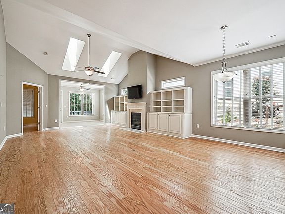 Welcome to The Springs at Sterling on the Lake! This stunning home features a spacious master on the main, updated master suite, and beautiful new hardwood floors. A versatile guest suite or flex room awaits upstairs. Enjoy low-maintenance lawn care and easy access to fantastic amenities including tennis, pickleball, gym, and vibrant social groups-cards, book clubs, and more. With no age restrictions, this community offers a perfect blend of comfort, convenience, and connection. SOTL offers 8 tennis courts, 6 pickleball court, 4 pools, numerous pocket parks, playgrounds and miles of walking trails around the lakes, through natural areas and to a beautiful waterfall. Less than 10 minutes to shopping/ groceries and restaurants. Ideal South Hall location!!