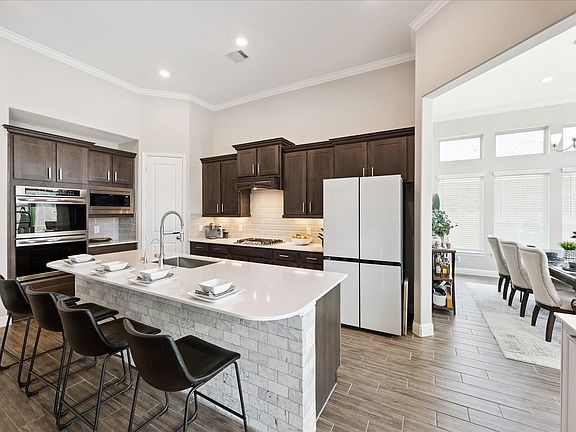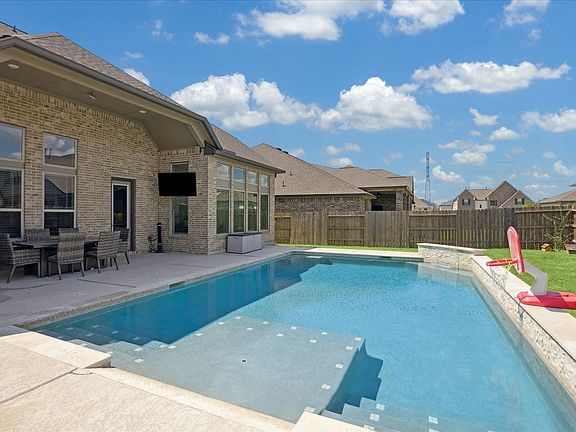 Shows like a model home! Gorgeous 2021 build with a beautiful pool and water feature! Four bedrooms, 3.5 baths, home office, game room, formal dining and large island in kitchen. High ceilings in living room and open shelving flanks the automatic fireplace. Neutral colors and updated finishes! Generously sized primary bedroom with extra sitting room is downstairs with large closet. Three car garage, gorgeous pool and outdoor living! Wood treads on stairs, high ceilings and natural light. Beautiful landscaping!