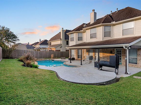 Stunning spacious 4 bedroom, 3 1/2 bath, 2 story home on a quiet cul-de-sac. Open floor plan. The kitchen hosts an amazing chef's island with shaker cabinets, soft-close cabinet doors and drawers, and quartz countertops with a contemporary tile backsplash. The first floor also features high ceilings, luxury vinyl flooring, designer paint and crown molding. The primary bedroom overlooks the backyard and pool. Step through a gorgeous sliding barn door to enter the roomy bathroom where you will be treated to double vanities, and luxurious spa finishes. Upstairs has 3 more large bedrooms, 2 full baths and an enormous game room. Enjoy the outdoors on your shady, over-sized covered patio, and in or next to your crystal-clear pool featuring flagstone and sheer decent waterfalls. THIS IS AN AMAZING HOME! Don't miss it...