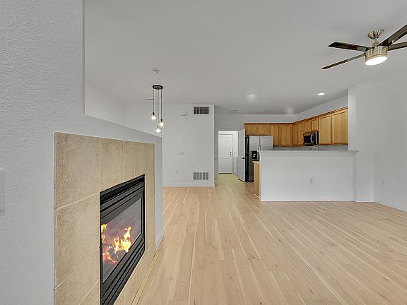 Welcome to this inviting 2-bed, 2-bathground-floor condo in Aurora. The spacious layout features a living room with a fireplace, and an additional dining area off the kitchen. The kitchen is equipped with all stainless steel appliances, a The primary bedroom includes its own ensuite bathroom, while the second bedroom enjoys access to a full bathroom nearby. Both bedrooms feature great windows for natural light and ceiling fans for comfort. An attached 2-car garage provides secure parking and extra storage, while the private front porch creates a welcoming outdoor space. Additional highlights include central AC and access to the community pool.
