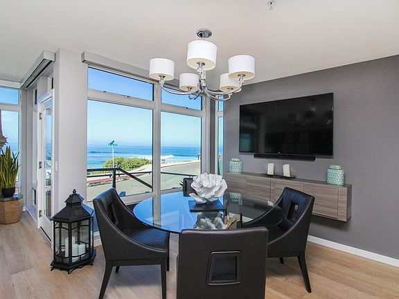 Ocean front at Windansea Beach, La Jolla, California. New in 2015. Interior design completed by award winning Swing Interiors of Los Angeles. Top of the line everything; chefs kitchen, viking appliances, flat screen 4HD Smart Tv's, mechanical blinds, gorgeous oversized outdoor patio that runs along front of unit facing ocean with private fire feature and bbq. Two underground parking spots with private elevator up to your floor. Private, quiet, gorgeous with the San Diego's best kept secret beach and ocean as your backyard. Available monthly or long term.