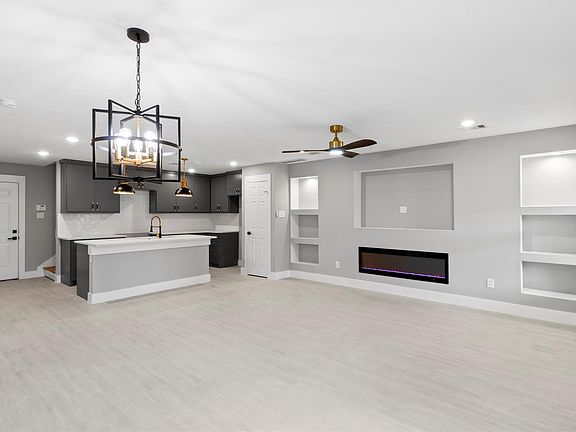Sleek built-in electric fireplaceCeiling fansCustom closetsPeaceful retreatChef-inspired kitchenSpacious center islandOpen-concept design