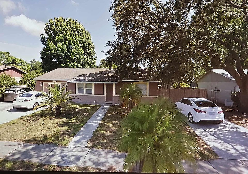 4 bedroom 3 bath split plan with converted garage as 4th BR with 2 separate entrances and private shower/bath. All ceramic tile home, great for pets, with fenced back yard. All large rooms with Den or 2nd living rm. and oversize laundry/hobby room. Large rear brick patio. Two driveways with 3-4 car parking pads out front and fenced side-parking for boat/RV. New HVAC.