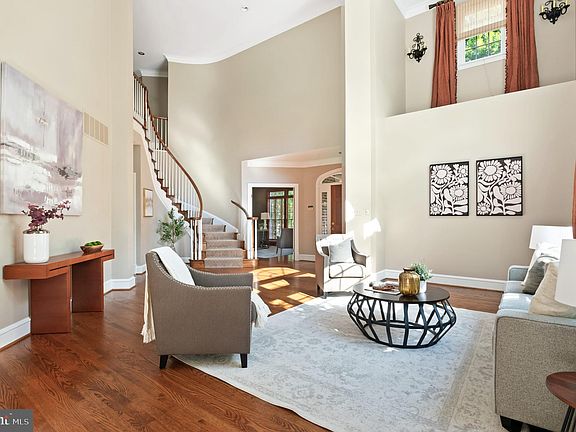 Set within one of Bethesda’s most coveted neighborhoods, this distinguished residence, offering nearly 6,500 square feet of beautifully finished space, gives the home an excellent flow for entertaining and everyday living. Designed for both intimate family moments and grand-scale entertaining, the home rests on a professionally landscaped .42-acre lot, where stone walls and lush plantings create a private sanctuary. A soaring two-story foyer, graced with gleaming hardwood floors and a sweeping curved staircase, introduces the main level. The formal living room, crowned with 19-foot ceilings and a striking oversized window, flows seamlessly into a refined formal dining room framed by bay windows and a charming window seat. The heart of the home, the expansive kitchen, is outfitted with custom wood cabinetry, a center island with seating, and a generous informal dining area that opens to the deck terrace and gardens. Adjoining this space, the family room offers built-ins, a stone hearth gas fireplace, and direct access outdoors. Completing the main level is a distinguished library, powder room, and oversized two-car garage. Upstairs, four spacious bedrooms include an exceptional primary suite. Walls of windows overlook the verdant rear grounds, while tray ceilings, a serene sitting area, and a custom walk-in dressing room elevate the sense of luxury. The primary ensuite features dual vanities, a jetted soaking tub, and a glass-enclosed shower with dual showerheads. The fully finished lower level offers a recreation room, mirrored gym, home theatre with projection system and luxury seating, plus a guest suite with full bath—perfect for hosting extended family, an au pair, or overnight visitors. The rear exterior offers an expansive deck, yard space and play house. Beyond its interiors, this home’s prime Bethesda location places it within close proximity to Walt Whitman High School, the Capital Crescent Trail, and the boutiques and dining of downtown Bethesda, with easy access to the Beltway.