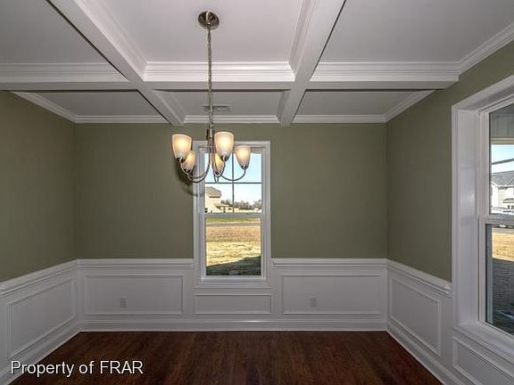 THE SPRUCE PLAN FEATURES COVERED FRONT PORCH & 3 CAR GARAGE.OFF FOYER IS FORMAL DINING WITH COFFERED CEILING.KITCHEN WITH GRANITE COUNTERS,SPACIOUS CABINETS,STAINLESS STEEL APPLIANCES AND ISLAND.ALL BEDROOM & LAUNDRY ON 2ND FLOOR.3RD FLOOR FEATURES REC ROOM,FLEX SPACE AND FULL BATH.MINUTES TO I-95 AND EASY ACCESS TO FORT BRAGG.NO CITY TAXES!!