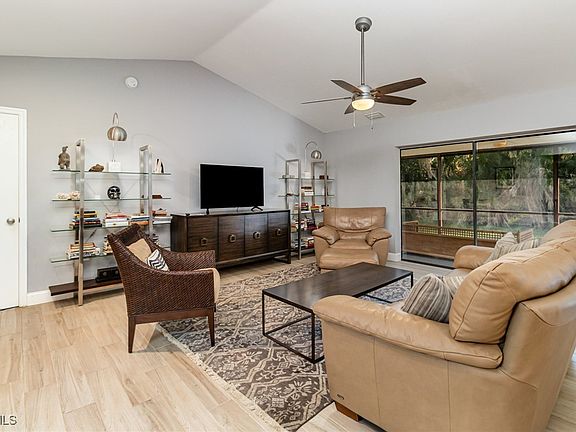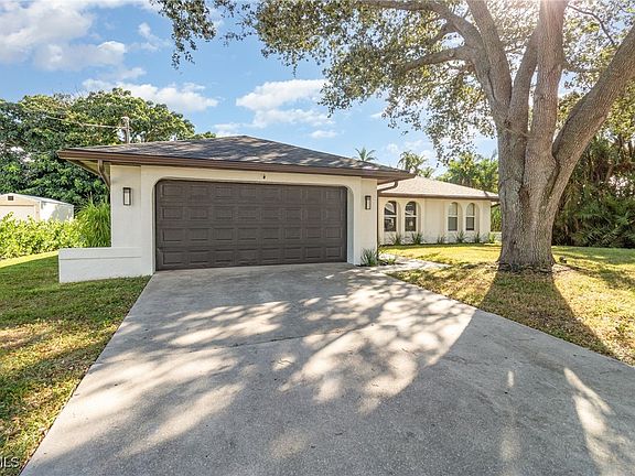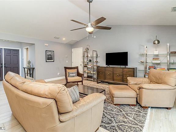 Welcome to centrally located, charming community of Florimond Manor. In this incredibly convenient location, just off Daniels Parkway, you’ll be close to RSW Airport, Lakes Park, Gulf Coast Medical Center, great schools, and some of the best shopping and dining Fort Myers has to offer—including Bell Tower, Whole Foods, and Costco. This 3-bedroom, 2-bathroom home has been lovingly cared for and thoughtfully updated. It sits on an oversized 0.31 acre lot with a mature landscaping and NO HOA RESTRICTIONS - a very rare find in such a central location. As you step inside, the home immediately impresses with its beautiful wood-look tile flooring installed throughout the home, freshly painted interior, and open layout with soaring vaulted ceilings that fill the space with natural light. The kitchen is at the heart of the home, featuring granite countertops, stainless steel appliances, eat in kitchen, and plenty of cabinet space. The primary suite, tucked privately on one side of the home, is spacious and bright, featuring a large walk-in closet and an updated bath with dual glass sinks and a walk-in shower. The split floor plan keeps the two guest bedrooms and the remodeled bath with a shower/tub combo separate, perfect for family or visiting friends. Step outside to enjoy your lanai area surrounded by a peaceful, private, landscaped view. The newly epoxy-coated lanai and garage floors, re-screened enclosure, and fenced backyard make this area perfect for relaxing. Recent updates bring peace of mind, including a NEW ROOF and GUTTERS (2025), NEW WATER HEATER and RANGE (2025), WHOLE-HOUSE reverse osmosis FILTRATION SYSTEM, security system, new ceiling fans, newer A/C, and fresh paint. This home IS NOT LOCATED IN The flood zone! This home has been very well cared for and is ready to move in. If you’ve been looking for a home that offers modern updates, privacy, and a great location - all with no HOA -this one is truly worth seeing! Schedule your showing today and come experience what makes this home so special.