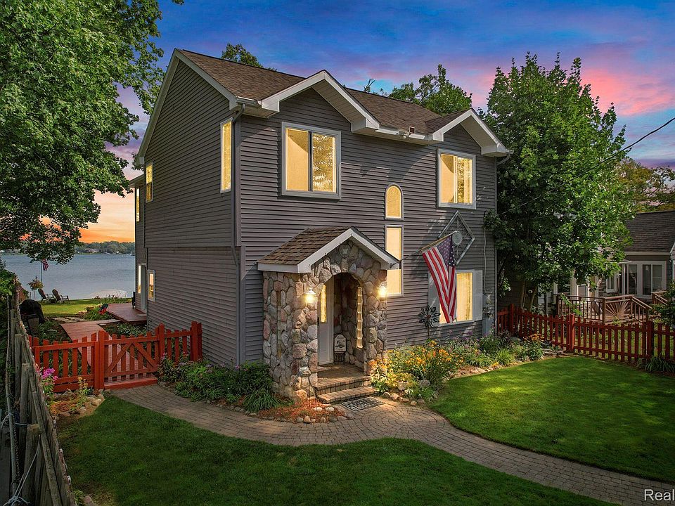 Vacation at Home desirable private / all sports Williams Lake. Open floorplan. Generous peninsula kitchen with granite counters opens to great room with wet bar, cozy fireplace and large windows taking advantage of lake views. Expansive cathedral ceiling primary suite with walls of windows for lake views, walk in closet and updated fashion bath featuring jetted tub, dual sinks and oversized shower. Additional bedrooms generous, updated main bath. Convenient 2nd floor laundry, 2nd floor study. Enjoy your morning coffee or an evening beverage taking in the views on your wrap-around deck. Majority of updated Wallside Windows, exterior paint 2020, updated stone seawall, updated 1st floor flooring. Great House, Great Sandy Bottom Lake. IDRBNG, all M&D are approximate.