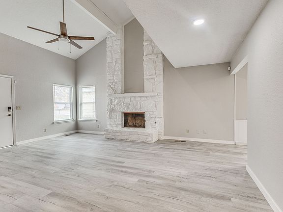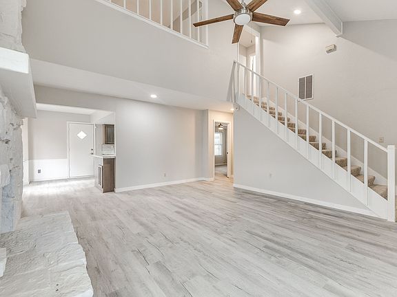 Modern countersPrivate fenced backyardNewly renovated interiorPlenty of storageLoft-style upstairs bedroomFloor-to-ceiling stone fireplaceCentral heat and air
