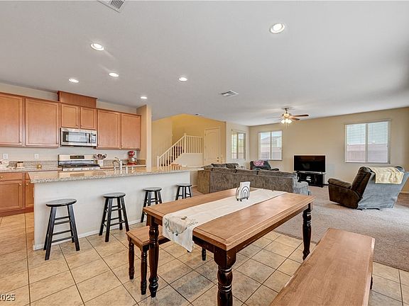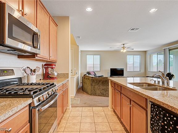 Welcome to the inviting North Peak community. This lovely home features an open concept design with large windows overlooking the spacious finished backyard with covered patio. Gourmet kitchen includes all stainless-steel appliances, upgraded granite countertops, 42-inch cabinets and double door pantry. Oversized sliding glass doors take you from the great room to the covered patio. Large dining room area. The 3-car garage floor has been professionally epoxied. Perfect for all of your toys! First floor bedroom includes ceiling fan/light with adjoining 3/4 bath! 3 good size bedroom's all with ceiling fan/light kits. Wonderful home for entertaining or raising a busy family. Walk to the adjoining Camino Eldorado Park featuring softball fields, soccer fields, doggie park, children's play area. All schools are close by.
