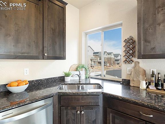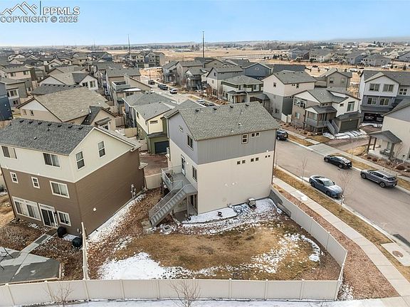 TRIPPLE BALCONIES!!! Welcome to a stunning 3-bed, 3.5-bath residence on an **extra-large corner lot** greeting you with a cobblestone driveway, and 3 charming balconies. Inside, youll find extra tall ceilings, abundant windows and plenty of natural light- keeping the home efficient on electricity. The gourmet kitchen offers a premium island with electrical outlets, a gas stove, upgraded appliances, granite countertops, and XTRA tall *42-inch cabinets.* The main level also includes an extra half bath, and thoughtfully allocated spaces for dining, kitchen, living room, & patio access, making it the perfect space for entertaining or everyday living. The basement offers garden-level access along with a full bath, allowing for flexible use; can double as a home gym, separate living area, office or a mother-in-law suite. Upstairs youll find that All three bedrooms are conveniently located next to the washer and dryer, and all 3 boast walk in closets- no more excuses for laundry mess. The Master sets its self apart with the oversized walk in closet, double vanity, and glass shower with stone flooring.>> Enjoy the convenience of an **in-wall vacuum system** and avoid clunky machines with a dump station in the garage . The rear yard features a *full privacy fence*. <<Prime Location & Community Perks>> Located within the vibrant Banning Lewis community, you’ll enjoy exclusive access to running trails, dog parks, a swimming pool, numerous parks, and the Ranch House for hosting and attending activities. With **K-12 schools** within the community, and only 5 min proximity to dining, grocery, hospital, fire station and entertainment- convenience is at your doorstep. offers a rare blend of elegance and practicality. **Experience the best of Banning Lewis—schedule your private tour today!**