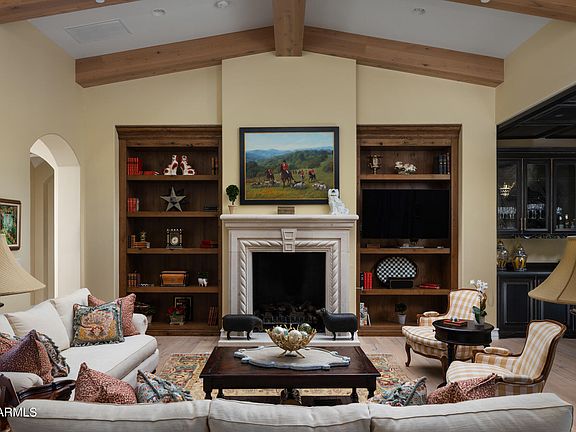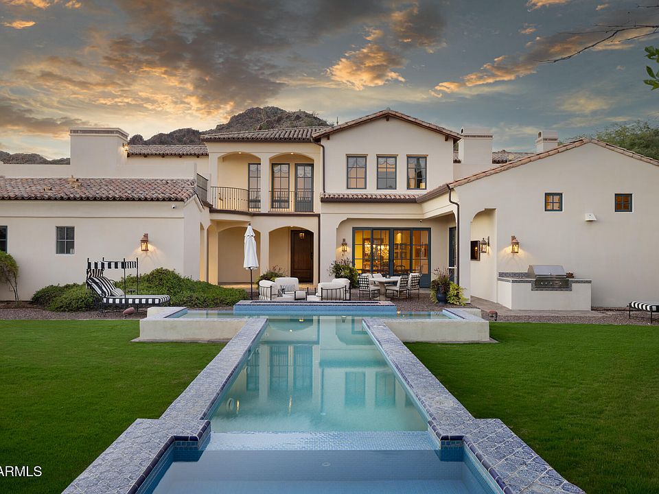 Discover timeless elegance in this 4,626 sq ft French-inspired residence, perfectly sited on a premium view lot within the prestigious guard-gated enclave of Paradise Reserve in Paradise Valley. Exquisitely crafted with incredible attention to detail, this refined home combines old-world character with modern luxury, offering exceptional privacy and picture-perfect Camelback Mountain and City Light vistas. The thoughtful floor plan features main-level living, highlighted by a beautifully appointed primary suite with finely tailored finishes. Two additional en-suite guest bedrooms are located on the upper level of the main residence, accessible via a stairway or private elevator. Charming outdoor courtyards surround the home, creating tranquil al fresco dining or relaxing areas. A separate guest casita provides ideal accommodations for visitors, blending comfort and sophistication.Rarely does a property combine architectural authenticity, luxury amenities and such a sought-after location. This residence embodies the very best of Paradise Valley living- gracious, secure and undeniably beautiful.