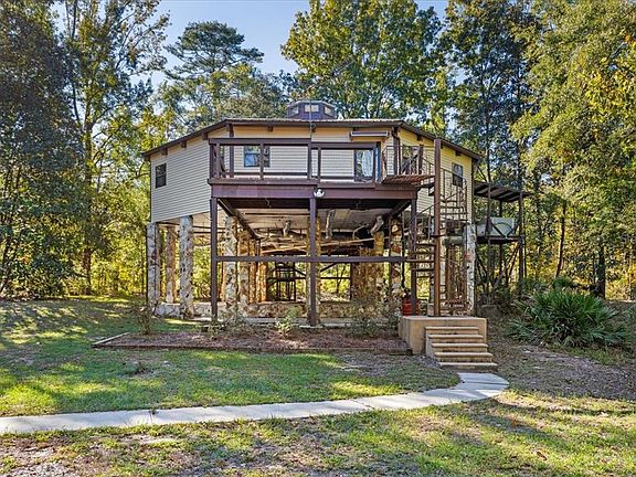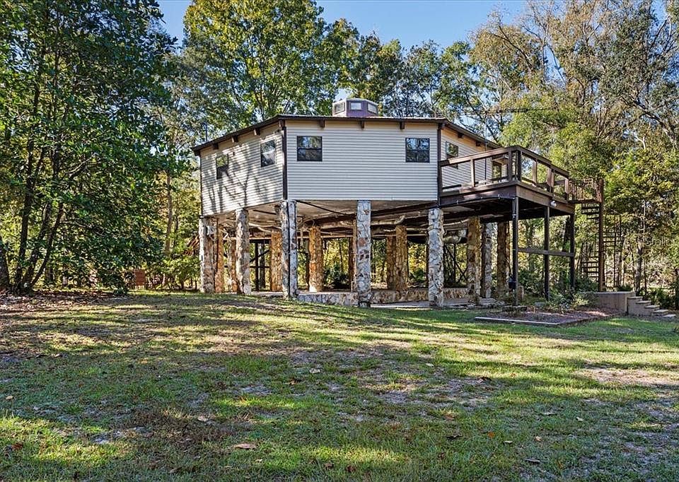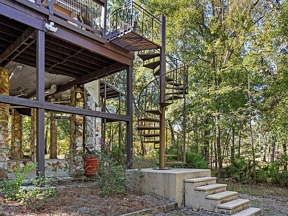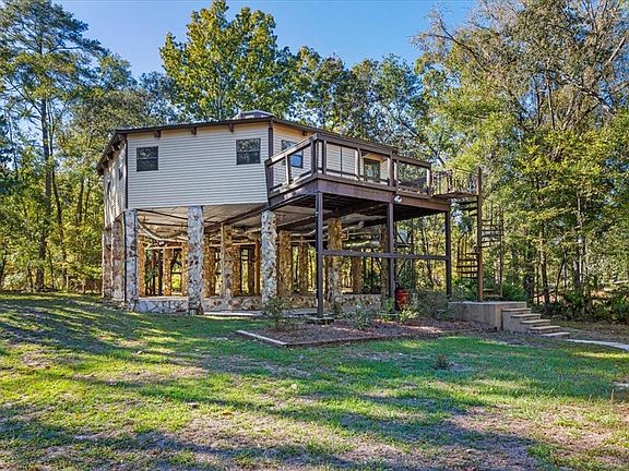 Custom WATERFRONT stilt-home on the iconic Suwannee River in Jasper, FL. This 3 bedroom/2 bathroom home is located in Suwannee Bluffs--a private, gated community offering a lifestyle that is truly the best of untouched Old World Florida. Suwannee Bluffs is a nature lovers paradise. This property is comprised of two adjoining lots totaling just under five (5) acres--perfect opportunity to build an additional guest house or rental home. Ideal for multi-generational living. This area has some of the most desirable short-term or seasonal rentals along the Suwannee River and this home makes a perfect homestead, second home, or vacation rental. This custom built octagon-shaped home has stunning features such as pecky cypress paneling, breathtaking tongue and groove planked wood cathedral octagon ceiling. Octagon shaped homes have been rated as more wind resistant than traditional square homes. Brilliant floor plan with panoramic views from all rooms including three bedrooms, two bathrooms, enormous living room, breakfast nook, custom built-ins throughout, wood cabinets and beautiful granite stone counters, lots of windows and two entrances including a spiral staircase and traditional staircase in the rear of home leading up to the deck. Metal roof and metal siding provide for easy care and long-lasting durability. Enjoy boating, fishing, and bird-watching from the comforts of your own private lot. Enjoy living close to the Suwannee River but elevated 13 feet. The solid concrete columns are wrapped in river rock and have steel pilings grounded in the bedrock. Hamilton County offers hundreds of miles of hiking trails. Suwannee Bluffs offers some of the most picturesque paddling and boating opportunities. The property is comprised of two lots totally just under five (5) acres so perfect for building other residential or rental structures.Low $150/year association fee to cover road maintenance and community gate. Located across the street from Hutch Gibson Park and Boat ramp which featuring a boat ramp (pictured), a playground and picnic facilities. Only 32 miles to Valdosta, 32 miles to Lake City and 17 miles to Live Oak.