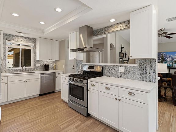 Beautifully remodeled home in Rio Vista on a quiet street (NOT a through street). Sold turnkey furnished, just walk in the door and start enjoying your new home.The foyer leads to the open concept living, dining, and kitchen. The kitchen is truly a chef's dream with quartz countertops, stainless steel appliances, gorgeous glass tile backsplash to the ceiling, and nicely appointed with most anything you could need to prepare your first of many meals.The adjacent dining area and living room are open concept, with vaulted ceilings, and access to the backyard via French doors (all doors and windows were newly installed Aug. 2017).The primary bedroom offers an ensuite bathroom, a very large closet, and a slider to the backyard.Opposite the primary is the guest bedroom which is next to the guest bath, and a linen closet in the hallway.There is a laundry room off of the entry that also leads to the attached two car garage (finished off) with plenty of storage.The backyard has ample space to relax and enjoy the shade of a huge olive tree. There are also mature orange and lemon trees.The large side yard can easily accommodate an RV, and there is 220v hookup.