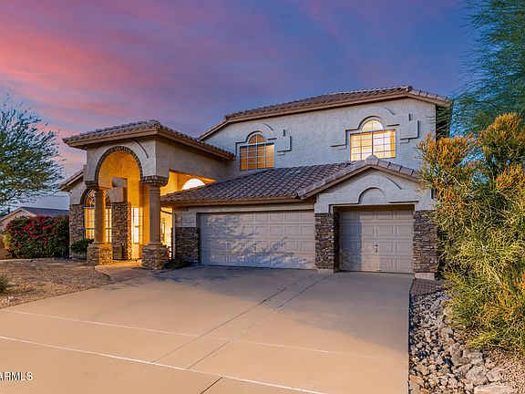 Home, sweet home! Stunning Red Mountain views, a beautifully manicured landscape, an impressive stone-accented facade, a 3-car garage, and so much more await you in this fabulous two-story POOL home nestled in a desirable CORNER LOT. Step inside to be charmed with generous living areas featuring tile flooring, soaring vaulted ceilings, plantation shutters, transom windows, and neutral paint, setting a welcoming ambiance that will make you want to stay. The family room boasts a fireplace to keep you warm. At the same time, the pristine kitchen is equipped with all the essentials to make home cooking a breeze, including ample cabinetry, mosaic backsplash, granite countertops, an island, a pantry, and built-in appliances. The airy main suite hosts a walk-in closet, a spa-like bathroom with double sinks