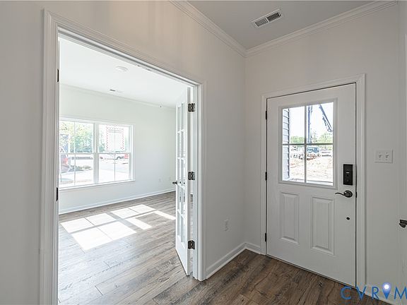 A new Savannah quick move-in is underway at The Villas at Swift Creek, Chesterfield’s 55+ townhome and quad community where low-maintenance living meets everyday convenience. This home, part of a quad-style building, is already under construction. Just off the entry, you’ll find a dedicated study with durable RevWood flooring—ideal for a home office or a quiet retreat. The kitchen, complete with a large island and GE appliances, connects seamlessly to the dining and family room, creating a bright and open main living area. The first-floor primary suite features dual vanities, a curbless shower, and a spacious walk-in closet. Two additional bedrooms and a full bath are also on the main level, offering flexibility for guests or hobbies. Upstairs, a finished bedroom and full bath provide even more space. Life at The Villas at Swift Creek goes beyond the home itself, with amenities designed for connection, recreation, and a welcoming sense of community.