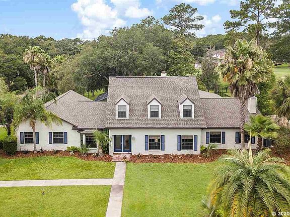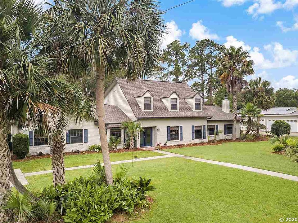 This recently updated home is warm and comfortable, with room to accommodate your own living situation. Downstairs are formal living and dining rooms, eat-in kitchen, informal sitting areas, huge playroom/Florida room, 3 BR (one en-suite) & another 1.5 baths. Up, a huge master suite added in 1987 has a fireplace, sitting area, desk, and space for a small fridge and microwave, providing the capacity for multi-generational living. New roof in May 2020, 3 new HVAC systems in Fall, 2019, redone irrigation system in April 2020, new flooring and carpeting in Spring 2019--all for under $115/sf. Ready to move in, this home is great for entertaining and every day living, conveniently located less than 5 miles from UF, downtown, Shands and the VA Hospital. Close to shopping and restaurants (Butler Plaza, Celebration Pointe & more), to I-75 access, and just 11 miles to the airport. Garage 4-car (tandem) with workbench, plenty of other parking, underground power supply, lovely trees and a large screened porch. The home sits on .55 acres and backs to the 8th green of the Gainesville Country Club golf course. Voluntary HOA is $100 annually.