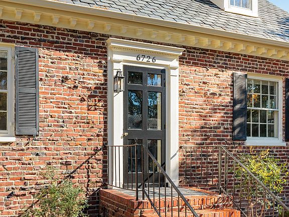 Outdoor slate patioTwo fireplacesSlate roofBrick homeQuiet streetPeriod door hardwareAmple storage space