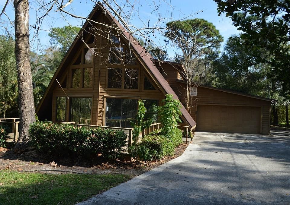 Welcome to East Road in North Lakeland! Check out this one-of-a-kind Cedar built A-Frame home sitting on 1.38 acres. This 2032 sq ft 2-story open floor plan offers plenty of space for all of your family's activities. You'll find open views to the fully fenced yard and private pond. It’s like living on your own nature preserve!!! The pond has a bridge / dock leading to a gazebo area where you can sit and read your favorite book while watching the fish jump. Or throw your fishing line in and have some fun fishing. The front of the property has a pasture and includes an oversized double carport that can be used for storage or closed in and used as a barn. There is also an extra-large storage building with a porch that could be converted into a mother in-law suite or guest house. In the backyard you’ll find a huge dog run. Perfect for all your pups. The home includes a front deck, side screened porch and added in 2025 an oversized back screened room. In 2016 several updates were completed. They include 2 sliding glass doors with impact glass, roof, hot water tank, bathrooms, kitchen, water softener and well pump. 2 HVAC’s come with the home. One was installed in 2024 and the other 2025. Almost all of the plumbing is new in the home. Water softener and HVAC units are serviced regularly. The upstairs includes an oversized bedroom with large walk-in closet and full bath. There is also a flex space with an oversized picture window overlooking the private pond on one side and an open balcony overlooking the downstairs living area. The first floor includes an oversized bedroom with a large walk-in closet and full bath. This area requires some finishing touches. Plenty of under stairs storage space for all your holiday decorations. The kitchen features plenty of stone counter space great for multi-tasking and overlooking the large living room and dining room which allows the chef to stay involved with the rest of the family during meal prep! There is also a half bath off the kitchen, perfect for guests. Directly off the kitchen, is space enough for a breakfast area or sitting area. Beautiful tile flooring through the home. With a few added touches this could be your year-round home and vacation get away all in one! This home offers the peace and serenity of the country while conveniently located for all your needs. This is not just a house; it's a place to call home where every moment brings the promise of new memories!