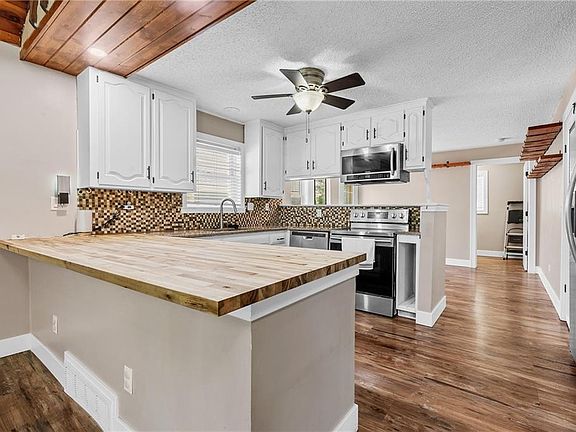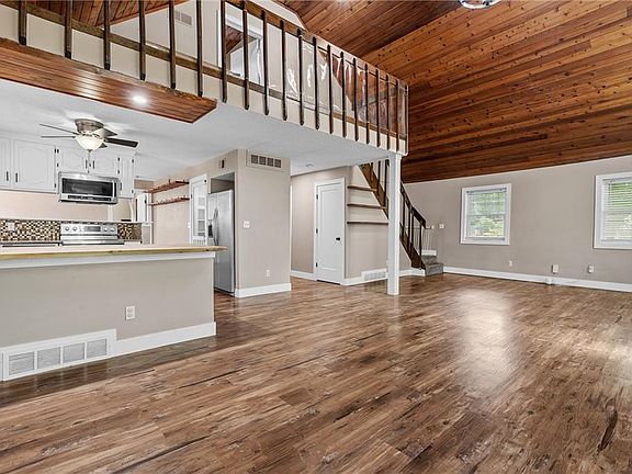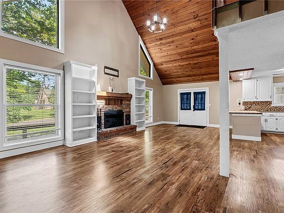 Enjoy lakeside living in this beautifully designed 2-bedroom, 2-bath Raytown home featuring 1,521 sq ft of open space and stunning lake views through tons of oversized windows. The bright, open floor plan flows effortlessly. A large country-style front porch is perfect for enjoying your morning coffee, relaxing or entertaining, all with a stunning lake back drop. A detached 2-car garage adds convenience and extra storage, and the fully fenced backyard offers privacy and room for pets to roam or to play. Ideally located near parks, schools, shopping, and dining, with easy access to major highways, this home blends peaceful retreat with everyday convenience. Don’t miss your chance to call it home!