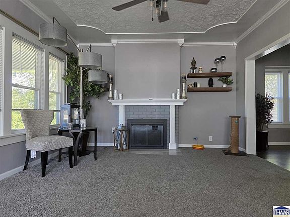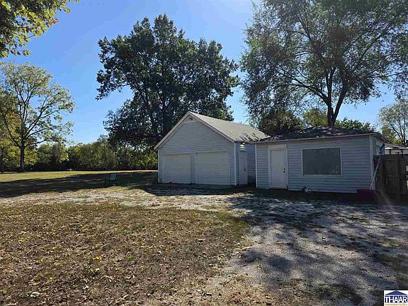 Charming Bungalow on 2.5 Acres. Situated north of town, this spacious 3-bedroom, 2-bath bungalow offers a park-like backyard and plenty of room to enjoy both inside and out. There's both a covered front porch and a covered patio overlooking the property. Inside, modern gray paint, white trim, and granite kitchen counters give this home an updated feel. The living room features an electric fireplace insert for cozy evenings, and the large dining room easily accommodates a large table plus additional furniture pieces. The primary bedroom is conveniently located on the main level. The dry basement is currently being used as a family room, adding valuable living space. A mudroom/laundry room off the back door provides great functionality, and the newer windows, furnace, and AC offer peace of mind. Outside, you’ll find ample garage space - 3, possibly 4 bays - perfect for vehicles, hobbies, or storage. A rare find with acreage and updates.