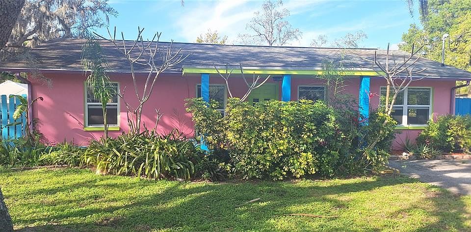NO DEED RESTRICTIONS! This charming home is located on a 1/2 acre lot in a charming "old Florida" neighborhood in New Port Richey. Looking for tranquility? This is your home! The huge lot is a gardeners dream! There are several fruits tress including; Star Fruit, Banana, Avacado, Orange and Mulberry. The home features a newer ac 2023, double pane windows. Concrete block out building perfect for workshop and your laundry room.