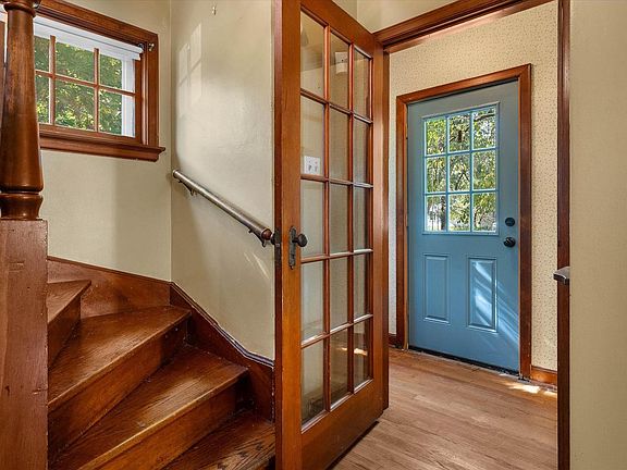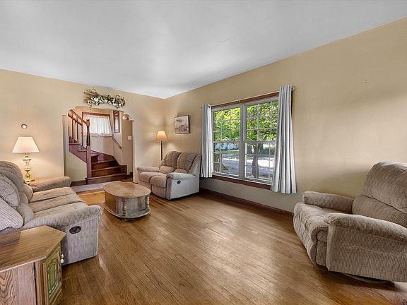 2 BR brick cape cod. House needs some TLC but has good bones. HWF's throughout home. Living rm has natural fireplace and dining room has patio drs to back porch. 1/2 BA on main floor. Finished rec room in lower level with built in cabinetry. Driveway entrance w/1 car garage. Completely fenced backyard for lots of privacy. House being sold ''AS IS''