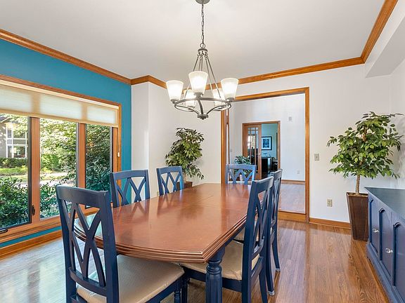 Discover this perfect Aboite home on the most peaceful, private wooded lot in popular Dells of Bittersweet. Natural lightening abounds from all angles and the extensive windows grant views of the natural setting. Convenient and private main floor ensuite with separate shower, jetted tub and large walk-in. The sprawling kitchen possesses an abundance of cabinetry, island/breakfast bar, stainless appliances, updated quartz counters and new cooktop. Generous dining room with beautiful hardwood floors and large extra pantry. Main Floor den features stunning transom windows and is the perfect setting to work from home or homework. Cathedral ceiling and floor to ceiling brick fireplace in the stunning great room. Large main floor laundry room with washer/dryer remaining. Upper level features 3 bedrooms with large walk-in closets, 1 ensuite and additional bull bath plus loft area. The finished walk out lower level comes complete with second kitchen, wine and full refrigerator, media area with projector and screen, 5th bedroom/exercise room, half bath and large storage closet. Walkout faces the water view with lovely stamped concrete patio and hot tub. Other features include; ring doorbell, nest thermostat, invisible fence, battery back up on sump pump, radon mitigation, newer patio door/some replacement windows. An amazing amount of storage thru out. Neighborhood Pool!