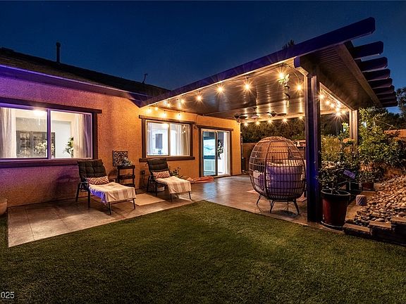 MOVE-IN READY! 1-story LivingSmart® eco-forward home by Pardee in Eldorado on a private, corner lot with designer touches throughout! Gated, 3b/2ba/2car with pool in a resort style backyard! * Chef style kitchen: Large granite island, 42" espresso cabinets, stainless appliances, gas range, exterior-vented hood. * Baths with quartz counters, upgraded sinks, custom tile, fully built-out primary closet. * Interior upgrades include rich laminate wood-look floors, crown molding, faux brick accent wall, custom media built-ins, surround sound wiring, smart thermostats, LED lighting, ceiling fans. Energy-efficient construction: Low-E windows, Radiant barrier roof sheathing, R-38/49 attic insulation, insulated flex ducting, and 225-amp service. Backyard offers a true resort retreat: sparkling "plunge style" pool w/waterfall, (a compact gem 10'x15', with dramatic lighting) oversized covered patio, ceiling fans, dog run with faucet, multiple outlets for entertaining or holiday lights.*Come & see!