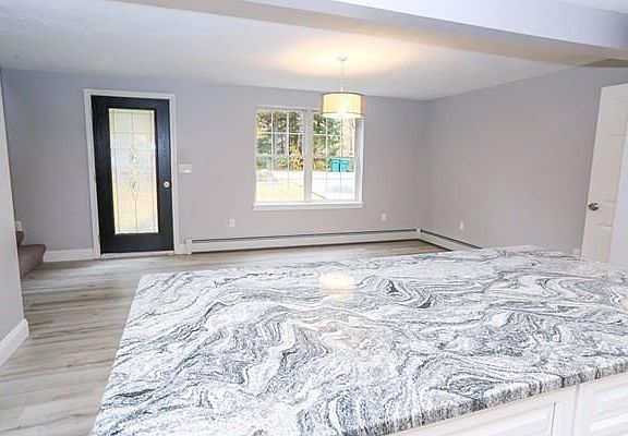 Beautifully refinished 4 bedroom Colonial! Perfectly private with just over an acre of wooded back yard. Stunning granite throughout the kitchen, with stainless appliances and a very convenient island that leads directly into the dining room. One first floor bedroom and bath, with the other 3 upstairs. Master bedroom is amazingly spacious with walk in closet and sliders that lead to an second story deck. Master bath has dual vanity, shower and spa tub! New roof, new boiler and much more Priced just right, don't let this one slip by!