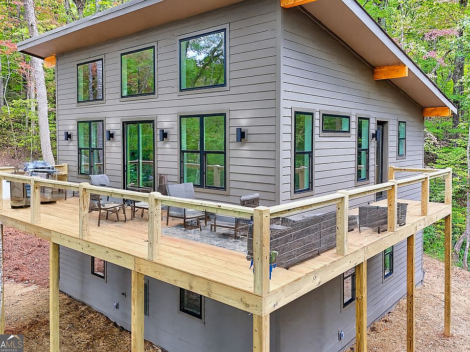 New 'Modern Mountain' model home located in Black Rock Estates. Come see the brand-new Fairview Mountain Inc. model that is also available for sale. ***Now through 11/30, special financing and/or $25,000 flex dollars are included for below market interest rates, closing cost assistance, and for cash buyer(s) cash discounts. This home has it all: 3 bedrooms, 2 1/2 bathrooms, 2 separate living areas, over 2000 square feet, high ceilings, 8-ft doors, covered entry, wrap-around deck, windows, windows, windows, fireplace, designer fire pit with Adirondak chairs, and a beautiful wooded lot with two spring-fed streams. Close to downtown Clayton, this gated community offers a private retreat that is minutes from great restaurants, shopping, grocery, and all this area has to offer. Gourmet kitchen with premium granite countertops, rich hardwood cabinetry, and high-end stainless steel appliances including an upgraded French Door refrigerator - built to impress and ready to entertain. Spacious great room has soaring ceilings, a cozy fireplace, and a wall of windows that flood the home with natural light and panoramic woodland views. Elegant finishes throughout (no carpeting anywhere!): low maintenance luxury vinyl plank flooring offers a rich look and feel that lasts, porcelain tile in all bathrooms including real tiled master bathroom shower with frameless glass enclosure and bathtub with tiled walls in the secondary bathroom (no fiberglass units in this home!), large lower-level recreation/flex room area with 10-ft ceilings that is very spacious and private (perfect for guests, older children or parents), laundry area hidden by double 8-ft doors, plus a half bathroom on main level for ease and comfort. Enjoy expansive outdoor living on oversized deck wrapping around two sides of the home for al fresco dining, a weekend or anytime Bar-B-Que, or peaceful morning coffee. Embrace sunrise and sunsets from your outdoor fire-pit professionally designed and located on 3.01 acres of wooded tranquility, offering the perfect blend of seclusion and convenience. Cement driveway and parking area are included in this amazing home package. This home is available to see now. Call for a private showing or ask about our next open house. This home is available for immediate occupancy. (Please note that some listing photos have been virtually staged.) Ask about the other locations we build in throughout Rabun, Habersham, and White counties.