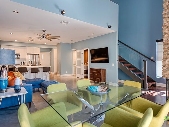 Upscale living in one of the best townhomes in the popular 48@Arenas complex. Unobstructed mountain views from the roof deck, walled patio, living room and dual master suites(one on each level for privacy). Within walking distance to the downtown entertainment, shopping and restaurant districts. The community pool is like your own private resort just steps outside the patio gate. This architectural dream boasts painted concrete floors, an open concept kitchen with new stainless appliances, marble counters, gas fireplace, spa like master baths in the dual master suites. Each room with custom wall colors and new upscale furniture and furnishings. The assigned parking is just outside the kitchen door for twocars. The owner has spared no expense in the recent remodel and the rent includes all utilities with the exception of cable tv as the unit has it's own solar system. This is a truly dramatic and custom unit.