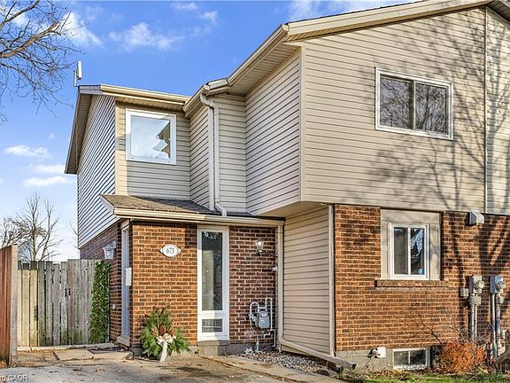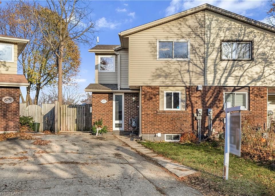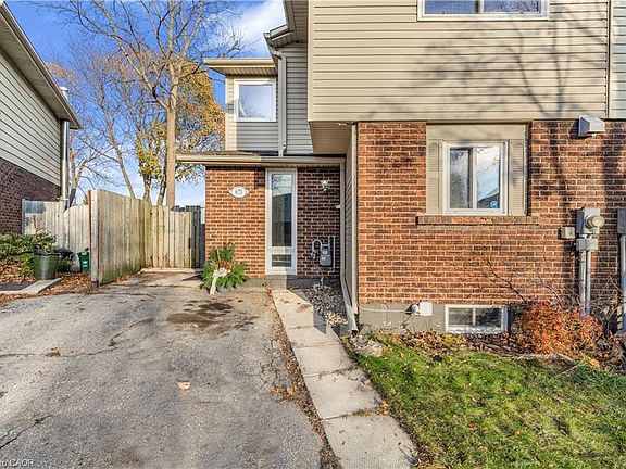 Welcome to 673 Hillview Road, an attractive 3-Bedroom, 1.5-Bath END-UNIT Townhome with great flow, modern touches, & a bright, open feel from top to bottom. Step inside to an inviting OPEN-CONCEPT living & dining area, where natural light fills the space & a sleek electric fireplace creates a warm, stylish focal point for the dining zone. From here, double glass doors extend your living space into the backyard — a standout feature that backs onto parkland with NO REAR NEIGHBOURS, giving you a peaceful, more open view than most townhomes. A convenient shed adds easy outdoor storage. The kitchen is contemporary & functional with plenty of cabinetry, making daily cooking & entertaining effortless. Upstairs, the primary bedroom offers lots of room to unwind, complemented by two additional bedrooms that can easily serve as a home office, nursery, guest room, or anything your lifestyle calls for. The UPGRADED 4-PC MAIN BATHROOM features a modern tiled shower/tub combo with clean, chic finishes. The FINISHED BASEMENT adds even more usable space with a cozy Rec Room, newer flooring, an UPDATED 2-PC POWDER ROOM, laundry room, utility room, & plenty of storage. ROOF SHINGLES (2023), FURNACE + A/C (2020). With a private 2-car driveway, & a location just minutes from Kitchener, shopping, restaurants, schools, parks, the Grand River, & quick access to Highway 8 & the 401, this home blends comfort, style, & convenience effortlessly. View today to MAKE THIS HOUSE YOUR HOME!