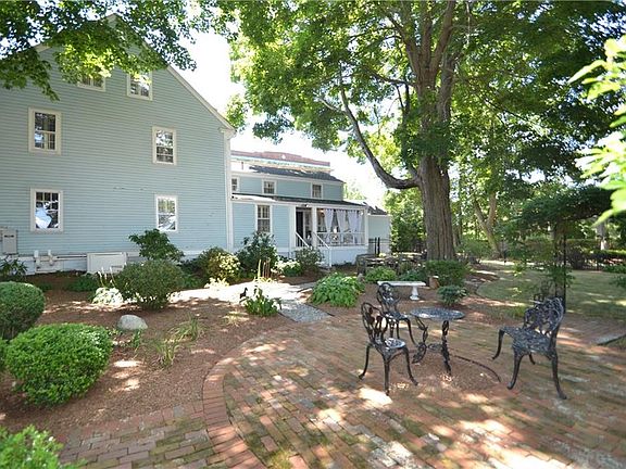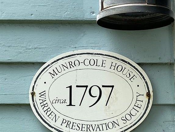 The Hezekiah Munro House, C1793 is a gable colonial beautifully maintained and restored with many original details & features including handmilled staircase, 2 beehive ovens and 3 fireplaces. Convenient location within the village walking distance to town beach, bike path, shops & restaurants. This historic gem was built on land originally part of Bristol, the town line was moved one mile south into Warren in 1873. Over 3000 SF of living space, tall ceilings, plantation shutters, updated kitchen, new plumbing, mechanicals, gas furnace, whole house generator, newer roof & 2 car garage. A sunfilled kitchen leads to a charming covered porch. Relax and enjoy views of the magical Zen gardens with something blooming each season. The dining room is a grand size for entertaining. A large private room off the kitchen is plumbed for a future bath or laundry. This room makes a wonderful home office or in-law. The family room has the original brickwork with beehive oven & access to the covered porch for sunset viewing. The living room has the paneled ceiling and leaded glass door. A secluded study tucked in the front of the house is lined with bookshelves. The 2nd floor has a very spacious 2nd family room, 3 bedrooms and 2 full baths. The 3rd floor is a private retreat with bedroom and sitting area. This majestic home sits on a large fenced lot with replica wrought iron fencing with shaded brick terraces and meandering paths.