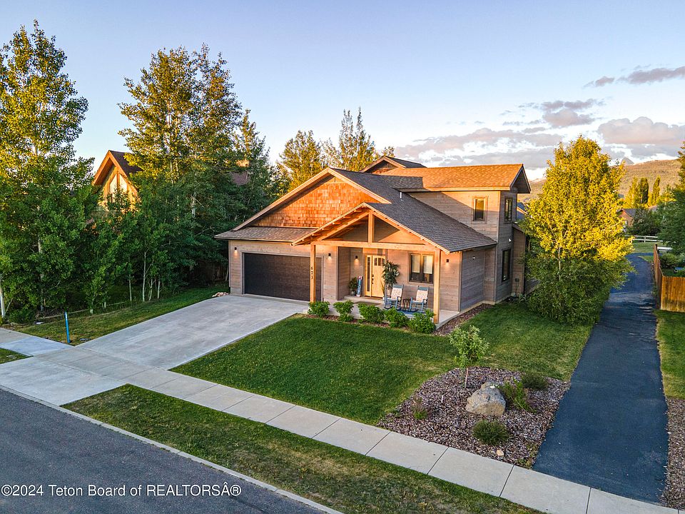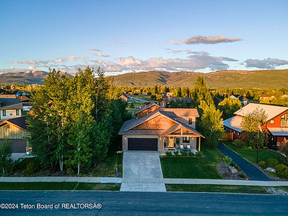 Beautifully crafted 2022 built 4-5 bedroom, 4 bath Driggs home; charming little city park to the east yields view protection & buffer. Makes a great primary home, 2nd home, or investment property. A short walk or bike ride into town or to schools, the location is fantastic. Boasts wood floors, handsome floor to ceiling stone fireplace, solid alder doors and trim, stone counters, custom tile work; a finely crafted home, built with care. Clean modern finish, expansive, sun filled windows, quality lighting, insulated blinds, stainless appliances, a great design. Lovely landscaping, private back yard abuts open park, providing a private setting, with a organically protected view of the Teton range. Optimizing your investment or second home via short term rental is permitted in this location. Some furnishing and personal property may be available at additional expense, ask List Agent. Please review Exhibit A posted to this report under Documents.