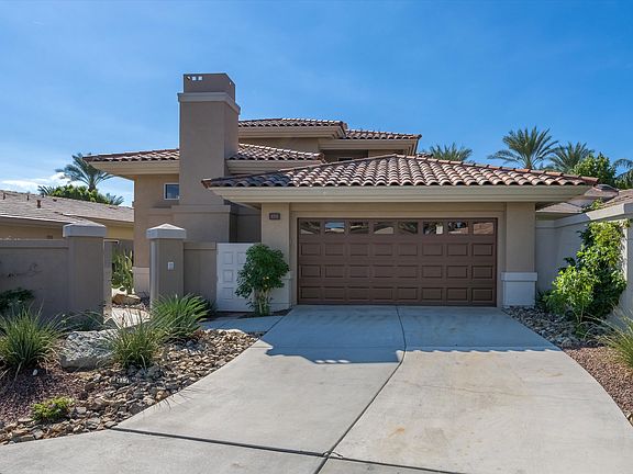 Lease available January - April 2025! If you are looking for the perfect desert getaway, look no further! This Smoke Tree 4 floor plan with 2 stories offers some of the most gorgeous views in Indian Ridge. Situated on the 5th hole of the Grove course, you'll be wowed by the stunning lake and mountain scenery. The home has been updated and includes one guest bedroom downstairs and a primary bedroom with an additional guest bedroom upstairs. The family room with a pool table is perfect for entertaining. Enjoy the southern exposure lakefront wraparound patio, outdoor dining room, built-in BBQ, ample space for sun-worshippers, and plenty of room for evening conversations around the fire pit. An Owners Club Membership is available for tenants to use, with membership approval tenants covering the monthly cost - 3 month minimum required. Tenant can utilize Landlords golf cart for a monthly fee. Utilize the Fitness Center with the latest strength and cardio equipment, an active schedule of classes, a full-service day spa, and three restaurants with outstanding food. Indian Ridge Country Club offers a never-ending social calendar and is one of the desert's premier private country club communities, centrally located in the Palm Springs area, close to Interstate 10, El Paseo, and the airport. Lease available January - April 2025! Contact agent about pets. Security deposit subject to change.