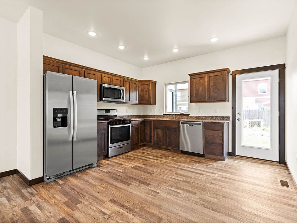 Smart, innovative, versatile design. Fantastic unit with highly desired location in Bozeman! This location offers a quick and easy commute to shopping, restaurants and all Bozeman has to offer. Open concept living space; finished with exceptional quality materials, you will enjoy the large living areas, including a luxurious kitchen equipped with granite countertops, stainless steel appliances, and LVT Flooring with real wood trim. All the rooms have abundant natural light with large windows.