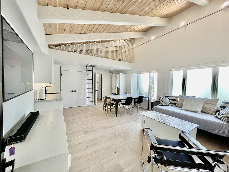Newly renovated Encinitas Studio Loft ADU rental unit. Located within blocks to downtown Encinitas, Swami's Beach, Moonlight Beach, eateries, nightlife and the coaster station. Walk to everything and relax and recharge in this private studio loft with a private outdoor living space. Belgian oak flooring, newly renovated, fully furnished . Fully stocked and equipped kitchenette with induction stovetop, built in fridge / freezer, Nespresso machine and everything you need for a kitchen, Surrounded by mature tropical trees, the beach studio offers everything you need, & nothing you don't. Fall in love with this coastal living studio, w/ French doors that open out to the private patio space. Our guests love the outdoor surf shower, surf storage, secured bike shed and private parking spot.