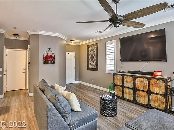 REDUCED!!!! MOTIVATED SELLER!!! BEAUTIFULLY APPOINTED AND CENTRALLY LOCATED 3 BEDROOM AND 2.5 BATH TOWNHOME WITH SOLAR PANELS PAID OFF IN FULL TO SAVE YOU THOUSANDS A YEAR IN THIS MARKET WITH INCREASING ENERGY BILLS!! EASY ACCESS TO FREEWAYS, SCHOOLS, SHOPPING, MINUTES FROM THE AIRPORT AND WORLD-CLASS ENTERTAINMENT ON THE LAS VEGAS STRIP. OPEN FLOOR PLAN WITH UPGRADED FLOORING THROUGHOUT, OVERSIZED FAMILY ROOM AND GOURMET KITCHEN WITH CUSTOM CABINETS, LEVEL 3 GRANITE COUNTER TOPS, ALL STAINLESS APPLIANCES AND KITCHEN ISLAND PERFECT TO ENTERTAIN FAMILY AND FRIENDS. PRIMARY BEDROOM UPSTAIRS WITH RE-DESIGNED SPA-LIKE SHOWER WITH RAIN FEATURES AND CUSTOM WALK-IN CLOSETS WITH CHANDELIERS! 2 ADDITIONAL BEDROOMS WITH JACK AND JILL BATHS. PRIVATE REAR YARD WITH COVERED PATIO PERFECT PLACE TO UNWIND AFTER A LONG VEGAS SUMMER DAY WITH YOUR FAVORITE BEVERAGE. GATED COMMUNITY WITH PRIVATE POOL AND SPA FACILITIES WITHIN SECONDS DISTANCE TO THIS BEAUTIFUL HOME!!