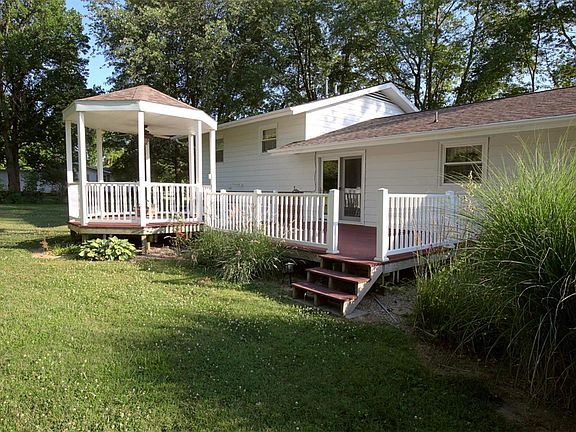 Cute as a button, this three bedroom home has hardwood floors throughout. As you pull up in the drive you will notice all of the master landscaping completed by the seller in the front and back yards. Lots of beautiful large trees too. Enjoy the outdoors off of the deck and gazebo. This house sits on just almost an acre and is so spacious. Inside the home are wood floors everywhere except the baths which are ceramic and the flooring in the family room which is set up as waterproofing. The seller has just hooked up to county water but still has the well hooked up for exterior use. The whole basement has been waterproofed and has a warranty. Water heater was installed in 4/2024, washer 2023, roof in 2014. Utilities include city gas, Ameren and county water. Extras include storage in the basement along with 1 stool ( not a 1/2 bath). This home has a water filter, and 2 lift pumps. Great home just minutes from town and is ready to be moved in. Clean and Crisp!!!