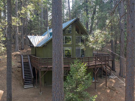 This cozy cabin has an open living space with living/kitchen and dining. There's 2 bedrooms and a full bath on the main level. Upstairs is a loft being used as another bed room with clothes hanging space along the sloping walls. The lower floor is a family room with laundry and a freezer. There's also storage access under the house. This home has been occasionally used and has had updates done right along. The deck has just been re stained and in 2011 the stairs on the left side were re built. the Septic is 3 years old as is the propane stove in the living room. The kitchen floor was put in 2017. Everything is here to get started even down to skis and a dinghy boat.