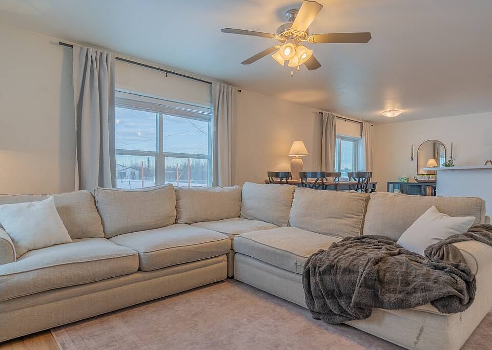 Beautiful, large newer home in the heart of North Pole! This spacious 3-bedroom, 2.5-bath home offers modern comfort and plenty of room to spread out. The main floor features an open living and dining area along with a large kitchen, complete with a walk-in pantry. Upstairs, you'll find three bedrooms, along with the convenience of an in-unit washer and dryer.