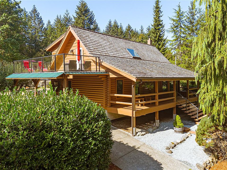 Welcome to 673 Western Acres! Rare South Nanaimo Retreat set on 1.37 acres with city water. This custom 2,000 sq. ft. Pan-Abode log home combines rustic charm with modern elegance. Featuring 3 beds and 3 baths, this thoughtfully designed residence offers space for both relaxation and entertaining. Step inside and discover the warmth of natural wood, upgraded main-level flooring, and a layout that flows seamlessly. The granite countertops, custom black windows, and meticulous finishing touches elevate the home’s character and style. The large primary suite offers an ensuite and a private deck, perfect for morning coffee. Outdoor living is at its best with a large front porch, extended rear patio, custom rock with fountain feature and a BBQ area. Detached double garage and workshop provides plenty of room for toys and hobbies. The property backs onto a reservoir and connects to walking trails and hiking paths. Close proximity to schools including VIU. Sizes are approximate. A Must See!