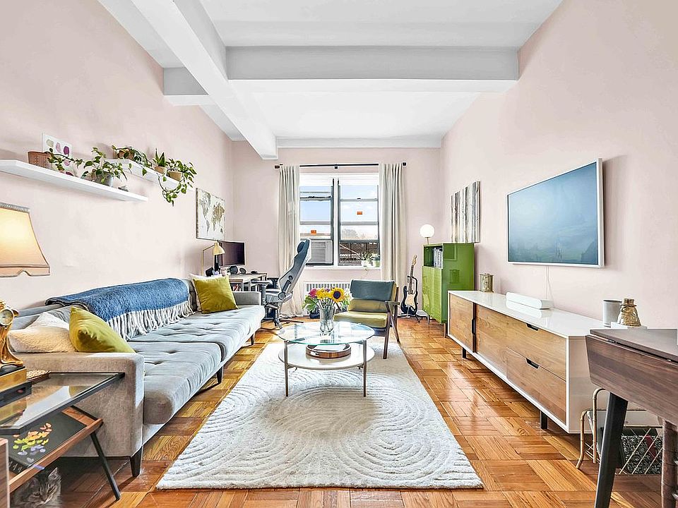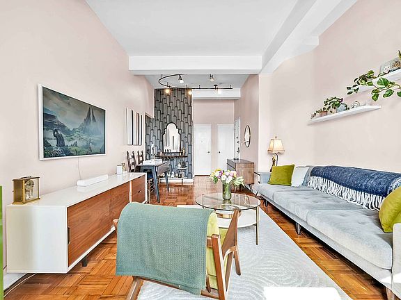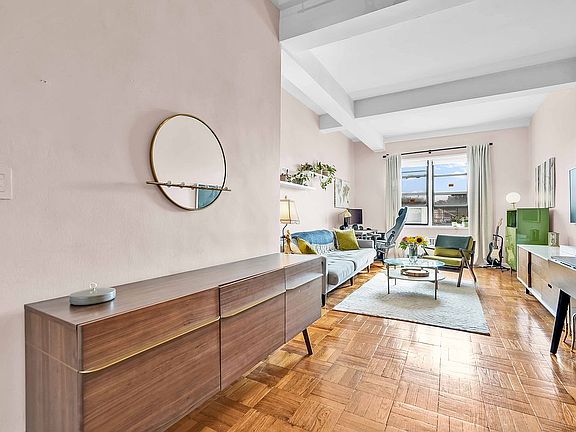 Discover the perfect blend of style and comfort in this spacious one-bedroom co-op. Soaring ceilings and hardwood floors welcome you into a home filled with warmth and character. The beautifully renovated kitchen, complete with stainless steel appliances, is ideal for preparing meals and entertaining with ease. An updated bathroom adds a modern touch, while the king-size bedroom offers plenty of room to unwind, along with closet space to keep everything organized.