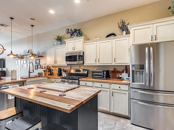 This welcoming 3-bedroom, 2-bathroom townhome, located in a gated community, offers comfort and recent updates throughout! Skylights fill the interior with natural light, enhancing the home's bright and cozy atmosphere. The kitchen is a delight, featuring a pantry, custom reclaimed wood countertops, a kitchen island, an eat-in area, and a breakfast bar. Recent upgrades include a 2020 water softener system, and a 2023 water heater. Additional updates that were paid for by the HOA include new skylights with warranty and resurfaced roof in 2023. The refrigerator is from 2021, and the A/C had a recent motor replacement. The owner is willing to leave the TV in the living room and guest bedroom. Enjoy outdoor relaxation on the covered patio in the private yard. The unit is conveniently located directly across from the community pool and guest parking, making it ideal for a starting family or an investment property.