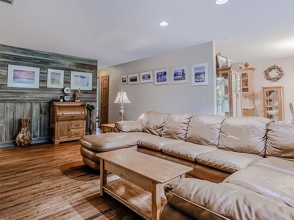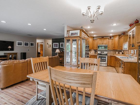 Welcome to this timeless ranch-style residence, crafted in 2010, nestled on a sprawling 3-acre parcel of land. As you step through the front door, your gaze will be drawn to the newly installed hardwood flooring that graces the living room and dining room, adding an air of elegance to the interior. The heart of the home, the kitchen, is a true masterpiece with its custom cabinetry adorned with exquisite crown molding and a new refrigerator. The master bedroom is a serene retreat, boasting a private bath complete with a walk-in tile shower. Outside, the property offers a wealth of amenities, including a substantial pole barn and a convenient shed, providing ample storage space and versatility for your needs. You'll love the nine apple trees providing an abundance of nature's bounty right in your own backyard.