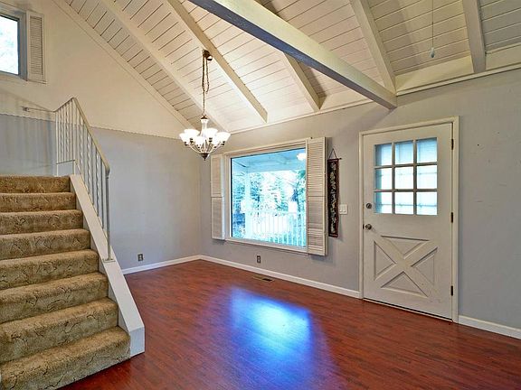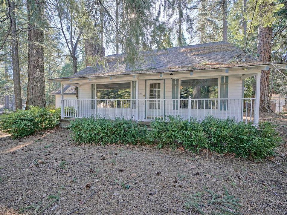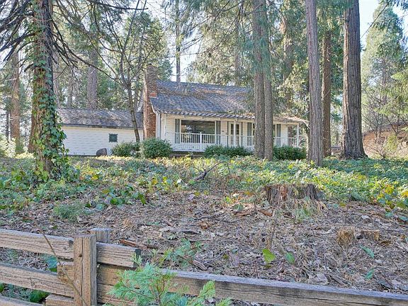 Nice setting among the pines. This 3 bedroom, 2 bath house is calling you home. Cute place with a covered front porch to sit and enjoy a cup of coffee. Master bedroom is on the lower level. Awesome brick fireplace with a gas insert for those chilly evenings PLUS central heat and air. This lot is level and offers an easy access circular driveway! The attached oversized GARAGE offers a single door and great WORKSHOP area. Just minutes to Jenkinson Lake for hiking, boating and water sports or just a short drive to Tahoe. This has been a great rental for the sellers.