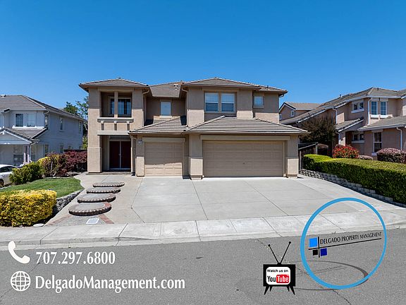 This is a custom made home with lots of well thought out features including a chef's kitchen with top of the line appliances, lots of counter space, cabinet space, large family room adjacent to the kitchen, plenty of closet space, large spa like bathroom, formal living room, beautiful hardwood floors downstairs and plush carpet upstairs. Three car garage, beautiful backyard perfect for entertaining. Located near premium shopping, parks, schools and minutes from Blue Rock Golf Course. Only 45 minutes from both Sacramento and San Francisco. This is not your typical home so if you are looking for a unique home to call your own, don't wait and miss out on this beautiful home....call now to set up your private viewing. - Lease Duration 12 months - Must make 3 times the rent as income - $40 Application fee per adult - 2 Years of employment and rental history - Must carry renters insurance throughout tenancy - 650 or above credit score is required - Please submit your applications through Delgado Property Management website - We do not accept Zillow rental applications or any third party applications. - We reserve the right to correct mistakes in advertising