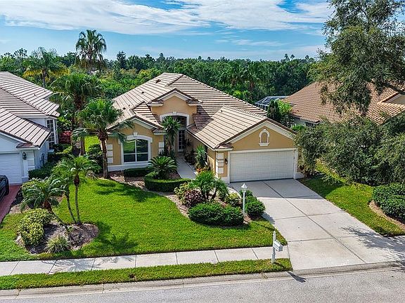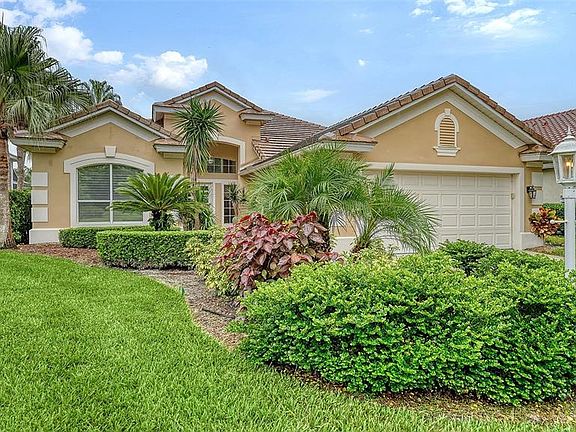 Welcome to this beautifully maintained and tastefully updated 3-bedroom, 2.5-bath home with an office, located in the award-winning University Park Country Club. From the moment you arrive, the tropical landscaping, pavered walkway, and sleek glass-paneled double doors with transom window set the stage for the inviting atmosphere inside. The open-concept living and dining room is filled with natural light and features soaring ceilings, modern lighting, designer ceiling fans, and diagonal tile flooring that flows seamlessly throughout much of the home. The spacious eat-in kitchen is a chef’s delight, offering a center island with gas cooktop, granite countertops, tiled backsplash, built-in oven and microwave, pantry closet, recessed lighting, and abundant cabinetry. A breakfast bar, charming window seat, and desk area add function and character. The adjacent laundry room includes a washer and dryer, sink, storage closet and access to the two-car garage. The living area is anchored by an electric fireplace framed with built-in nooks and elegant crown molding. Just off the living space, a private office/study offers flexibility as a den or formal dining room. Expansive fully-retractable sliding doors extend the living space outdoors to the lanai. The primary suite is a retreat with hardwood floors, tray ceiling, Bermuda shutters, retractable sliders to the lanai, and a stunningly renovated ensuite bath. Here you’ll find quartz countertops with dual sinks and a makeup vanity, a free-standing soaking tub, zero-entry walk-in shower, double frosted glass doors to a large closet, and sleek designer finishes. Two guest bedrooms with hardwood floors, shutters, and ceiling fans share an updated bath with granite countertops and a tub/shower combination with glass enclosure. Step outside to the expansive lanai, designed for both relaxation and entertaining. Featuring leather marble pavers, a grill area, sparkling pool, and infinity screened enclosure with serene lake views, it also includes a convenient pool half-bath. Peace of mind comes with a NEW ROOF (2023), HVAC (2018), and NEW POOL EQUIPMENT, pump, and heater. As part of the maintenance-free Virginia Water neighborhood, residents also enjoy a community pool and a carefree lifestyle. This home combines elegance, functionality, and resort-style living—all within the renowned University Park Country Club community. University Park Country Club is consistently ranked one of the top courses in Florida featuring 27 holes of championship golf; tennis and pickleball; fitness center, croquet – as well as an array of social and group activities. Just a short drive outside this peaceful enclave is downtown Sarasota, with shopping, arts & theatres, museums, dining and entertainment, top-ranked healthcare, beaches and SRQ International Airport.