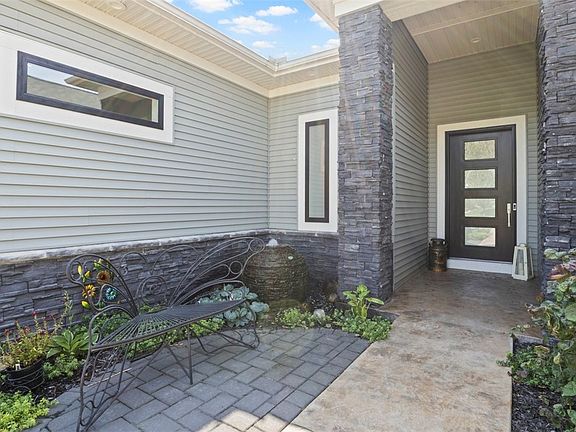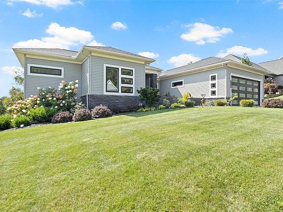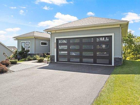 Welcome to this stunning, newly-built ranch-style home in Victor, NY! Enter through a landscaped courtyard to a luxurious residence with an open floor plan, featuring 3 spacious bedrooms and 2.5 elegant bathrooms. Exquisite hardwood floors throughout create a warm atmosphere, enhanced by modern features like a Bluetooth sound system and automated blinds. The Great Room boasts 20-inch tray ceilings, recessed lighting, and a cozy gas fireplace. The custom kitchen is a chef’s dream with quartz countertops, an oversized island, and sleek, two-toned cabinetry. Enjoy 10-foot ceilings, 8-foot doors, and imported German porcelain wall tiles. The dining room has a custom stained glass window, echoing neighborhood charm. Step onto the raised deck for serene views and ample entertaining space. Enjoy winter views of the Bristol Hills. The unique metal cable staircase, designed by Keuka Studios, enhances the modern aesthetic. The master suite includes a walk-in closet with custom shelving, heated floors, a floating double vanity, and a no-threshold walk-in shower. Convenience with first-floor laundry. Delayed Negotiations until Tuesday 10/1 @ 12PM.